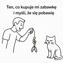 Człowiek, który uważa, że kot bawi się tym, co człowiek mu kupi.