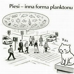 Ja, kot, uważam go raczej za miejską wersję planktonu: niby istnieje, niby coś robi, ale głównie przesuwa się bez ładu i składu, zajmując przestrzeń i wywołując chaos. Patrzę na nich z parapetu i czasem mam wrażenie, że miasto działa tylko dlatego, że koty nie biorą w tym udziału.